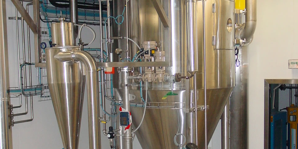 為了保護(hù)環(huán)境,溶解在有機(jī)溶劑中的產(chǎn)品的噴霧干燥在封閉循環(huán)噴霧干燥系統(tǒng)中進(jìn)行,其中有機(jī)溶劑在冷凝器單元中回收。在避免產(chǎn)品氧化降解的情況下,也可以使用相同類(lèi)型的設(shè)備設(shè)置。