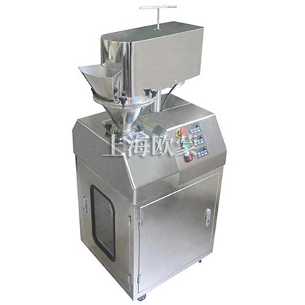 本機有送料機構、壓片機構、液壓機構、機架和電氣控制等部件組成,送料,壓片、制粒均采用變頻無級調速,油泵壓力可調,成品細度可以通過更換不同的篩網(wǎng)獲得。改進制粒轉籠,增加了顆粒的成品率。本機裝拆、清洗方便,與物料接觸部分皆為不銹鋼制作。產(chǎn)品符合GMP要求。物料由頂部送料漏斗加入,經(jīng)兩壓輪強制擠壓成片狀后進入下部制粒室,在制粒室中片狀物料被制粒刀片打碎,然后進入整粒室,直至顆粒小于或等于網(wǎng)孔徑,顆粒通過網(wǎng)篩到盛料托盤。所需要顆粒大小可以通過調整篩網(wǎng)大小來決定。